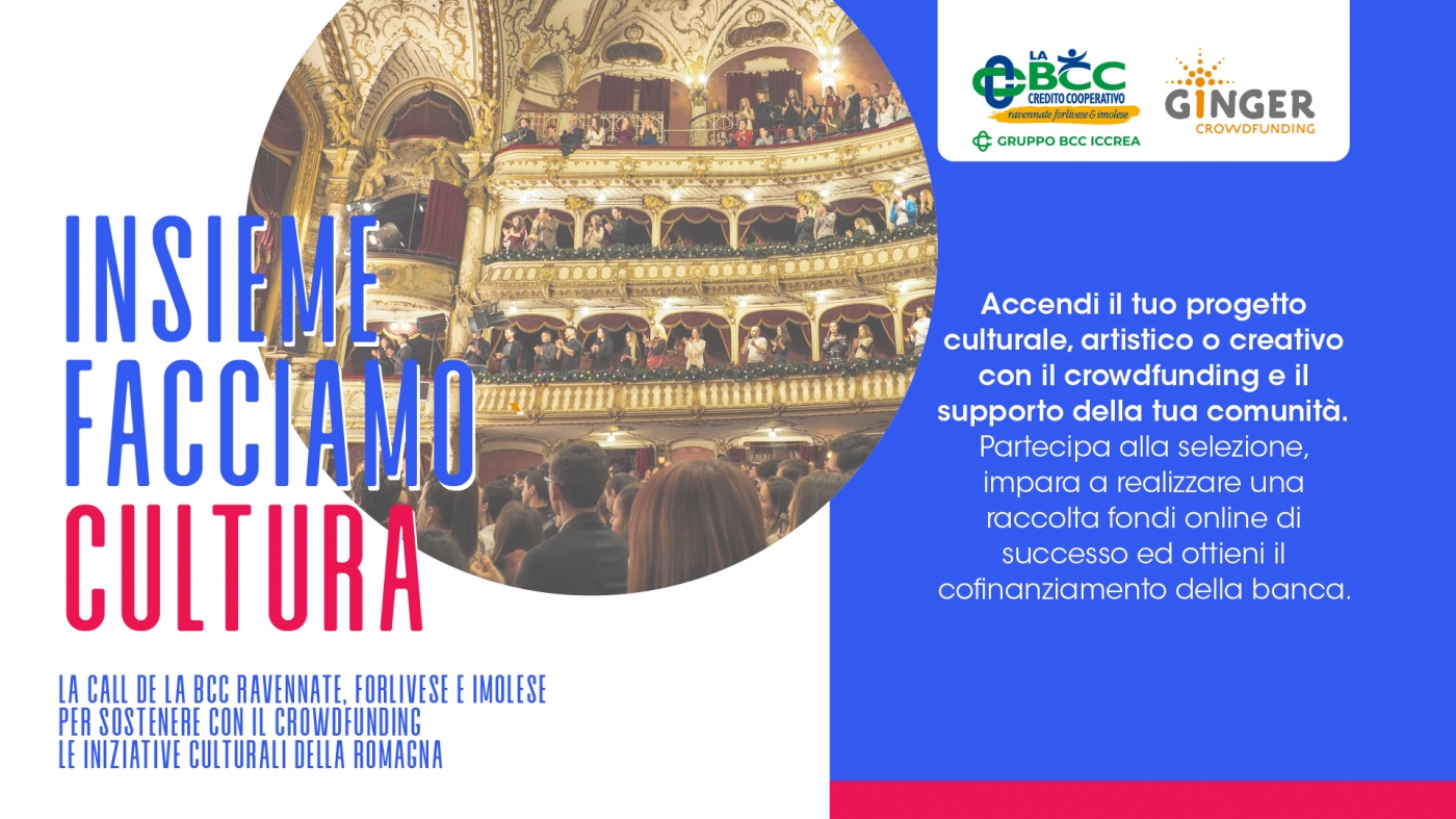 Insieme facciamo cultura è la nuova call promossa da LA BCC, in collaborazione con Ginger Crowdfunding, per sostenere con il crowdfunding tutti gli operatori del settore culturale e artistico del territorio romagnolo, come per esempio musei, teatri e imprese creative e culturali.